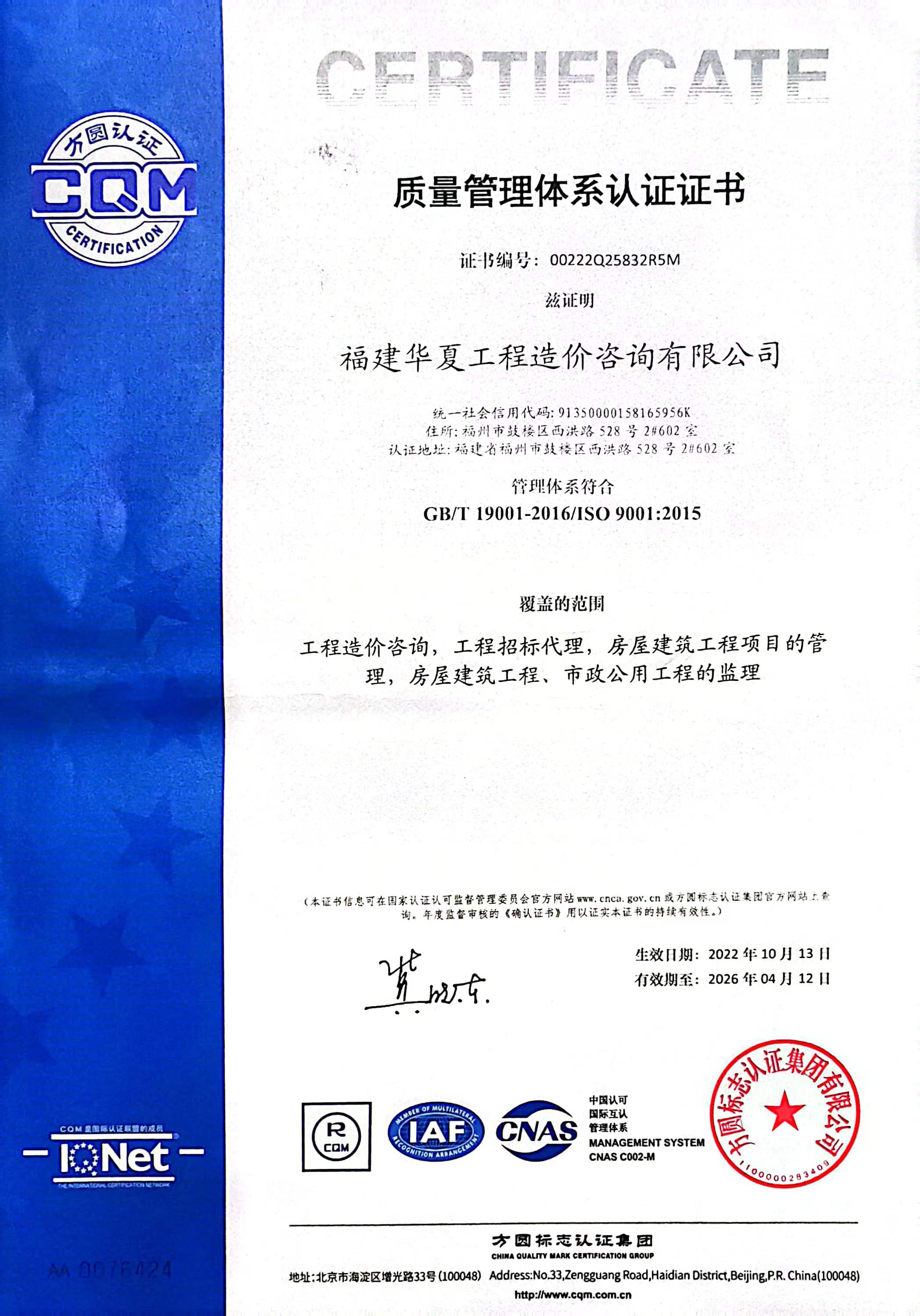 司在行业内率先通过了 ISO 质量、环境、职业健康安全管理 三系认证,建立了完善的质量管控制度。