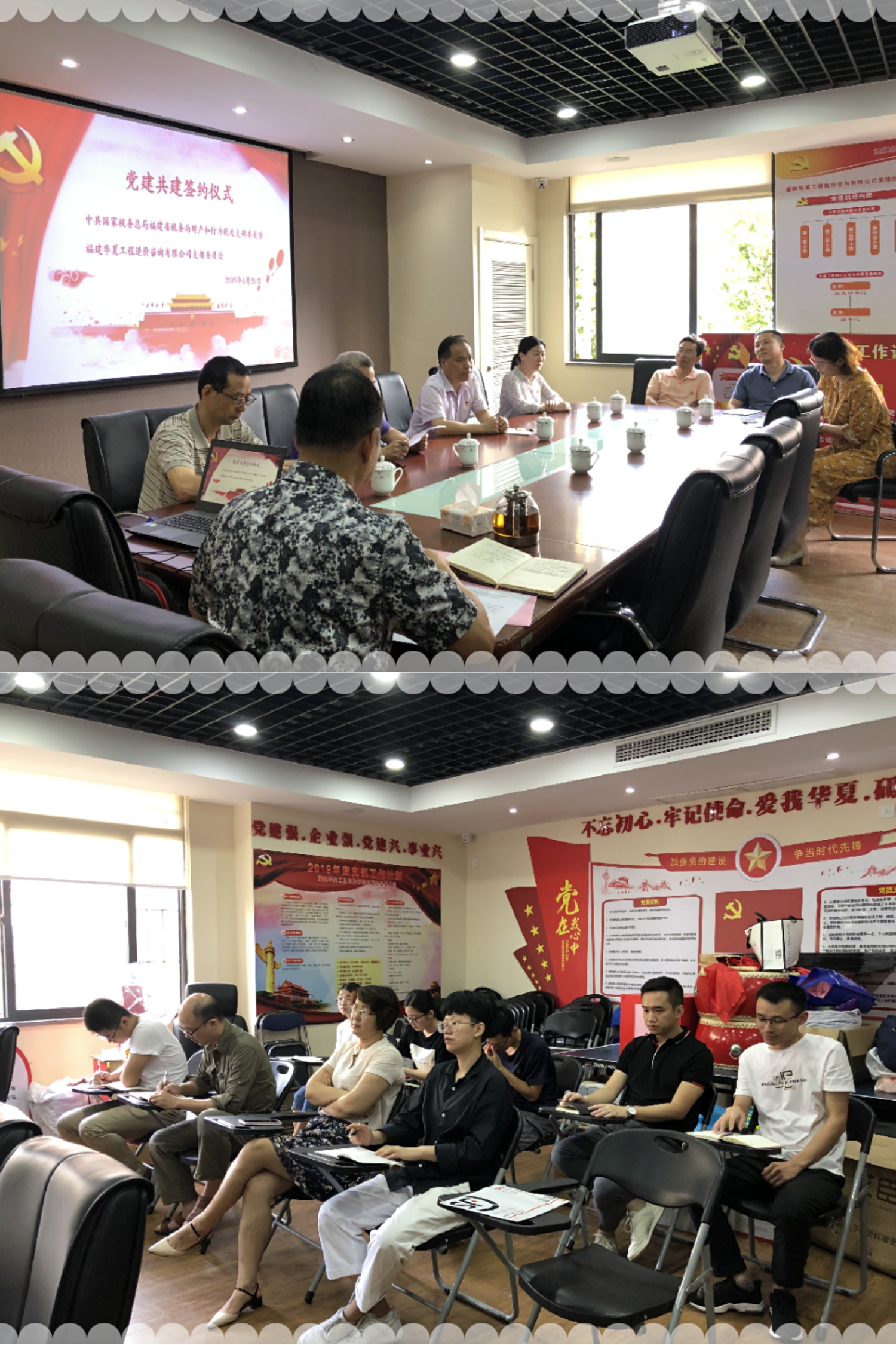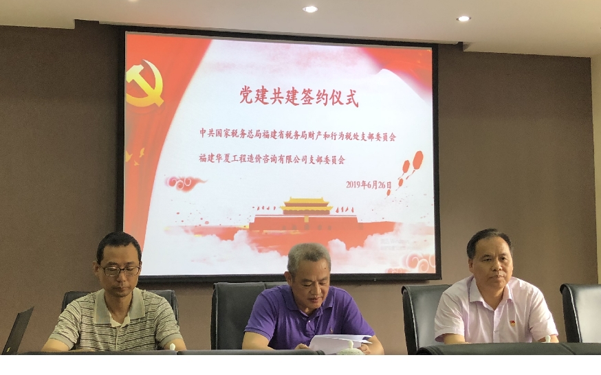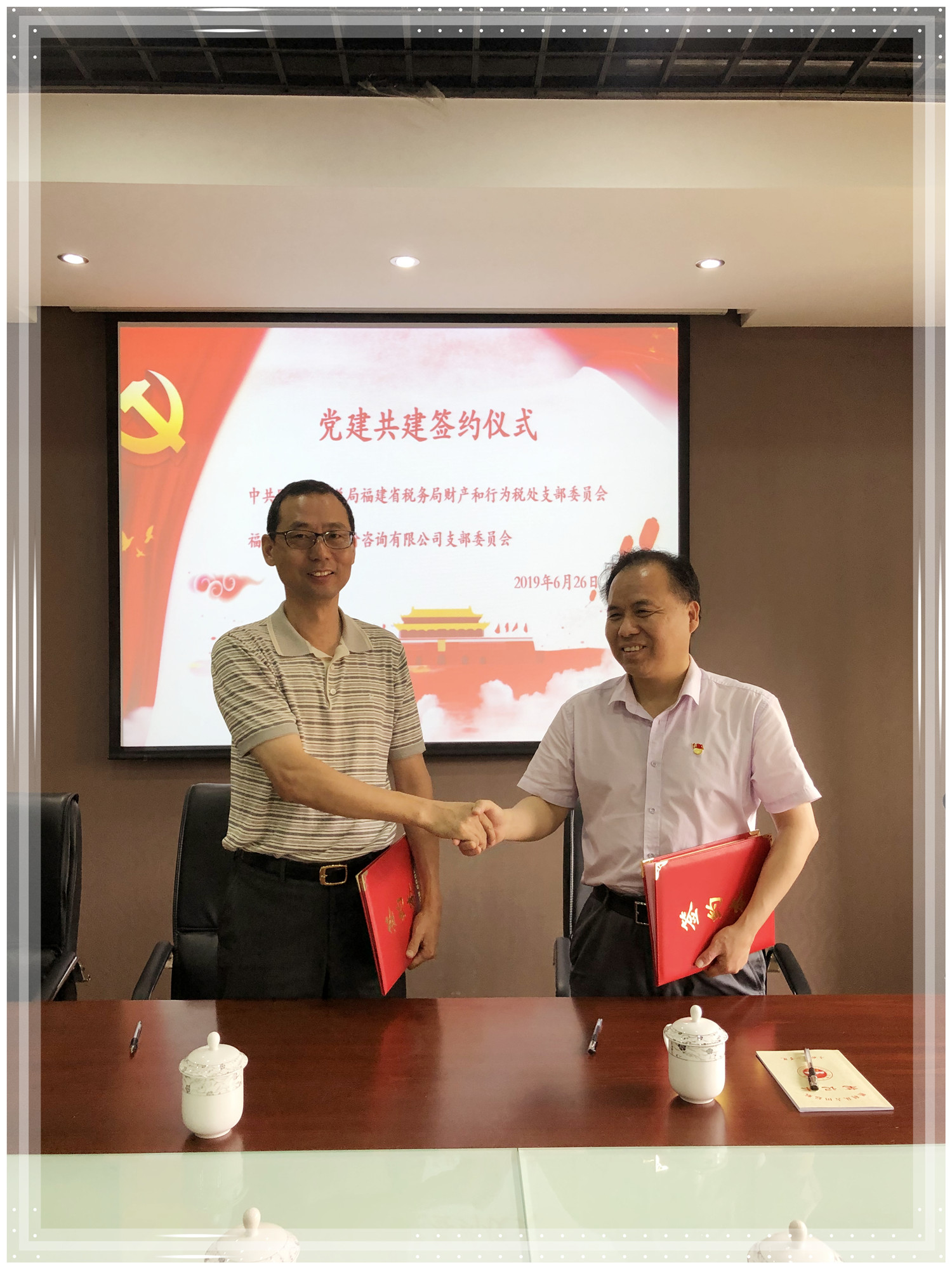 黄启兴董事长致辞后,由福建省财产和行为税处党支部书记张锦珊和华夏公司党支部书记李焜明,代表双方党支部在党建共建协议书上签字。